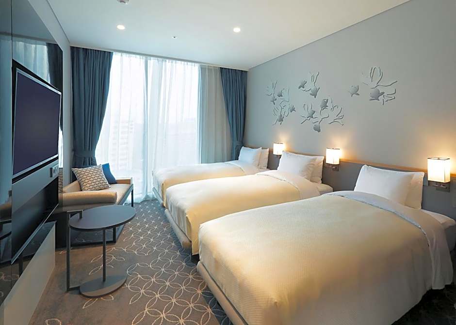 The hot tub is a top feature of this triple room. The triple room includes a private bathroom, well-fitted with a bath, a shower, a bidet, a hairdryer and slippers. The triple room features air conditioning, soundproof walls, a wardrobe, a safe deposit box and a flat-screen TV with satellite channels. The unit has 3 beds.